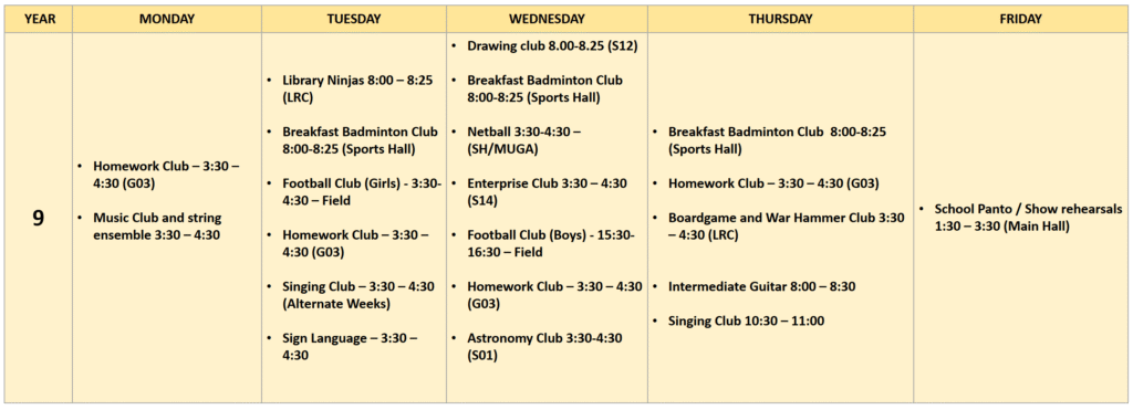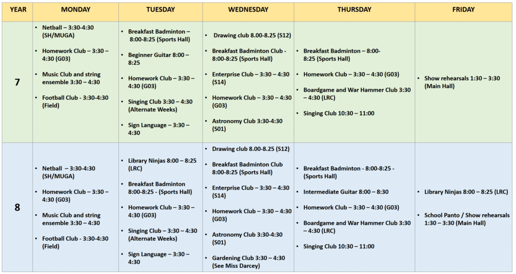Ingleby Manor Enrichment Timetable – Spring 2026