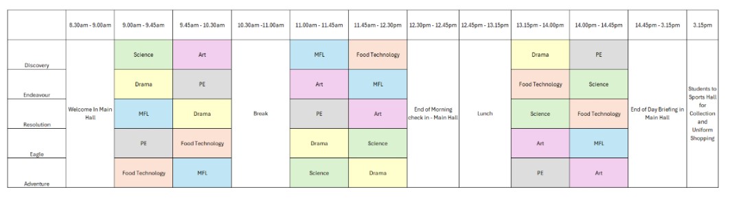 Below is a plan for the day and the subjects your child will have a taster of.