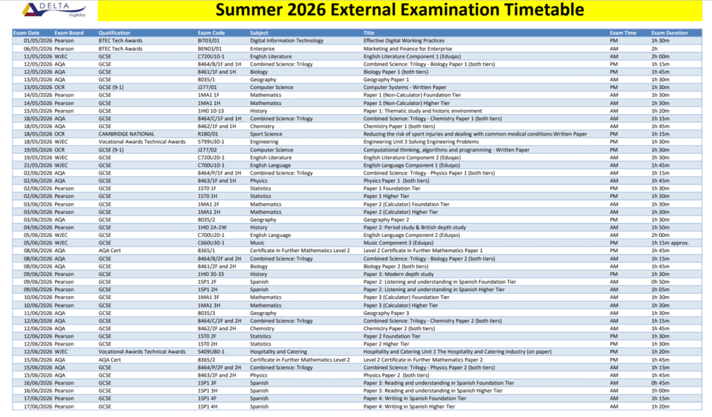 The awarding bodies have designated the morning and afternoon sessions of Wednesday 24th June 2026 as ‘contingency sessions’ for examinations.