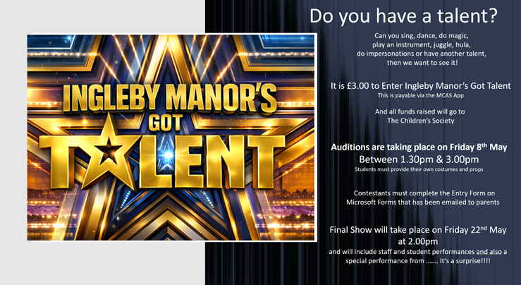 Do you have a talent you would like to showcase? It could be Singing, Dancing, Magic tricks, Acrobatics, Playing an Instrument. Anything you can do…..we want to see it!