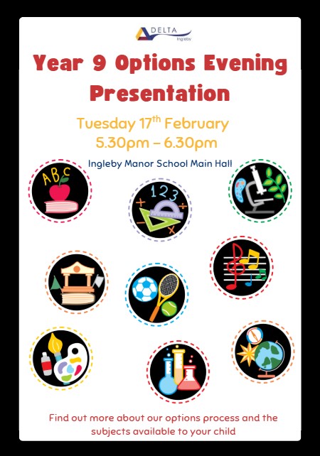 Year 9 Options Evening Tuesday 17th February 2026 5.30pm – 6.30pm Presentation 1 5.30pm – 6.00pm Presentation 2 6.00pm – 6.30pm