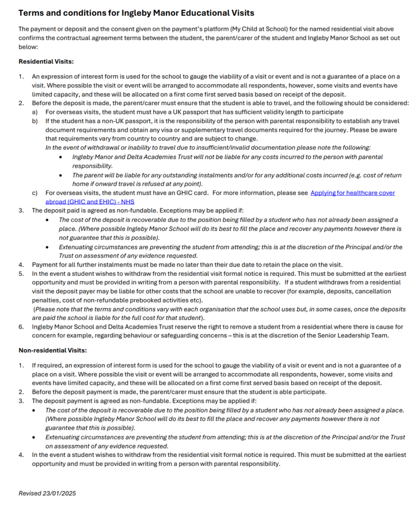 Terms & Conditions – Residential Trips