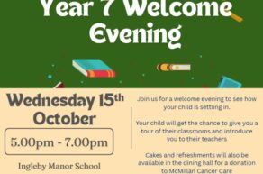 Year 7 Welcome Evening – Wednesday 15th October – 5pm – 7pm